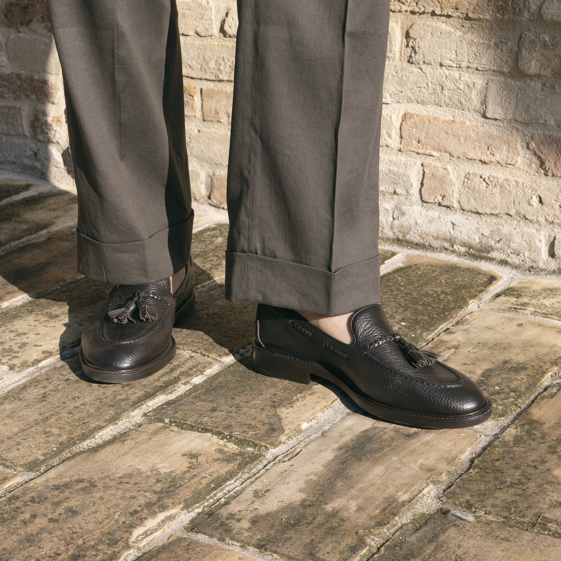 Mocassino da uomo con nappine realizzato in pregiata pelle di cervo testa di moro, noto per la sua straordinaria morbidezza e resistenza. Il design classico ed elegante è arricchito da dettagli artigianali e da una lavorazione raffinata che valorizza la texture naturale della pelle. Il fondo in gomma garantisce massima aderenza, flessibilità e comfort durante la camminata, rendendo questo mocassino ideale per un utilizzo quotidiano prolungato. Perfetto per chi cerca una calzatura elegante ma pratica, si abbina facilmente a look formali, business casual e outfit sofisticati.