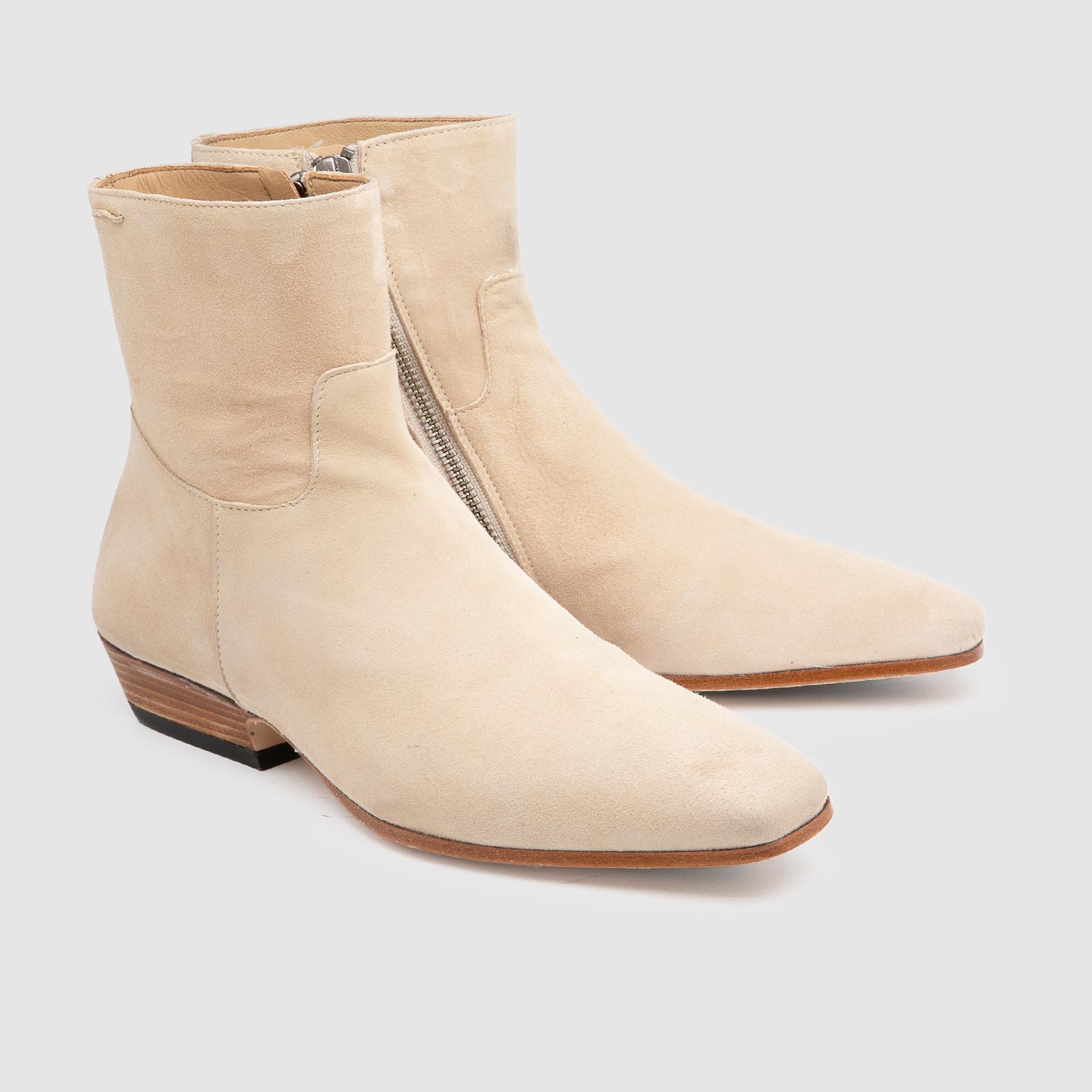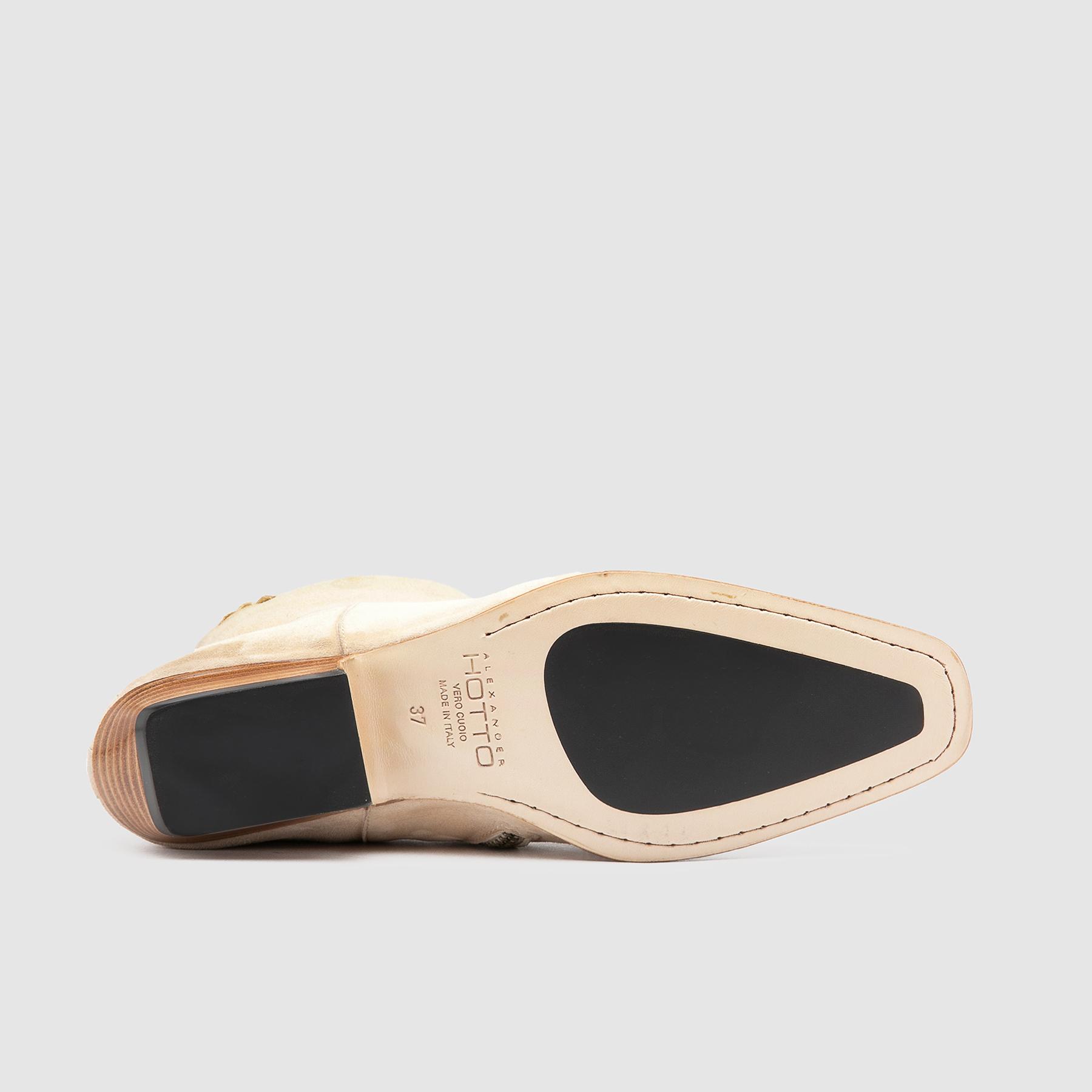 Women’s heeled ankle boots in beige suede with a sophisticated, contemporary design, featuring an elongated shape with a slightly square toe that slims the silhouette and gives the shoe a modern elegance. The soft, refined beige suede upper enhances the model with a velvety, luminous texture, perfect for feminine, sophisticated looks.The slip-on construction ensures flexibility and a natural fit, an expression of high-quality craftsmanship.The leather sole with non-slip tread offers stability and safety, while the side zip makes them easy to put on without compromising on aesthetics. The design is completed by the side straps, a distinctive detail that adds character and structure. A beige suede heeled ankle boot designed for those seeking style, comfort and timeless quality.